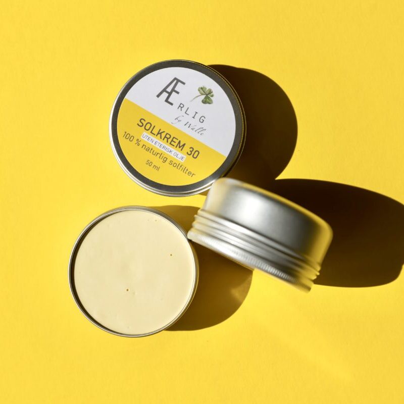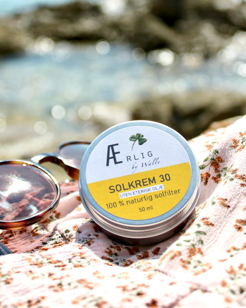 Solkrem 30 fra Ærlig by Walle – med fysisk solfilter og 100 % naturlige ingredienser.