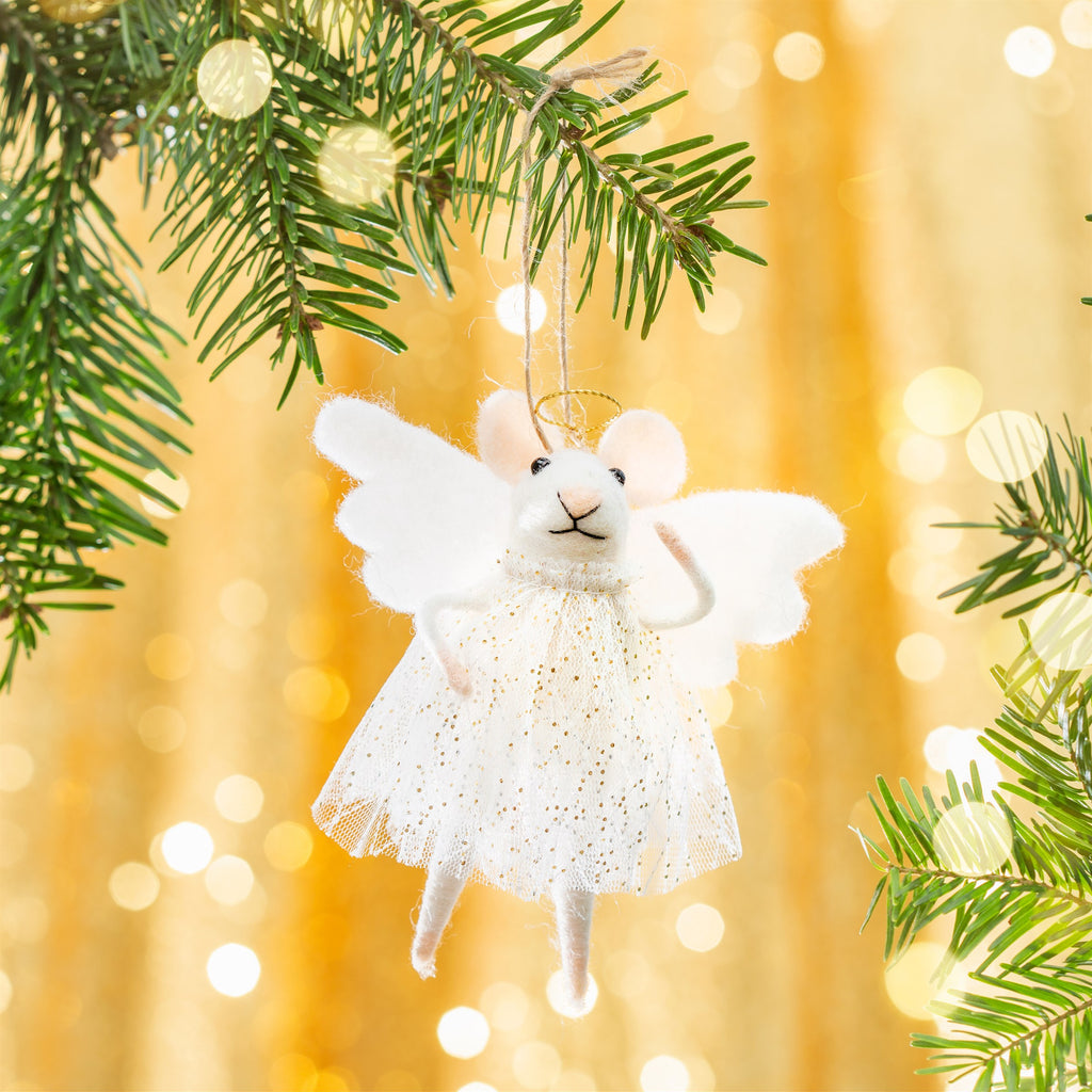 Denne søte musen i englekostyme er perfekt til å henge på juletreet eller på annet oppheng.