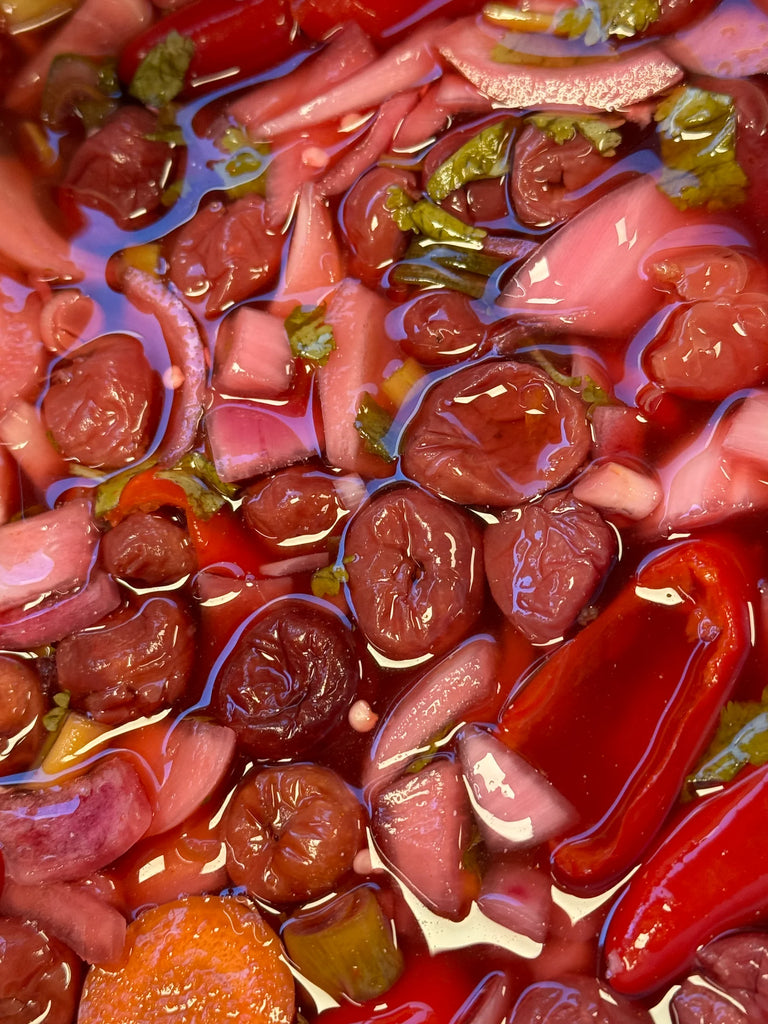 Her møtes varmen fra rød jalapeno med den søt og aromatiske kirsebærsmaken. Løk og hvitløk bygger en dybde i bunnen, og koriander gir den en frisk topp. Sausen er søt, fruktig, og har en mild varme.