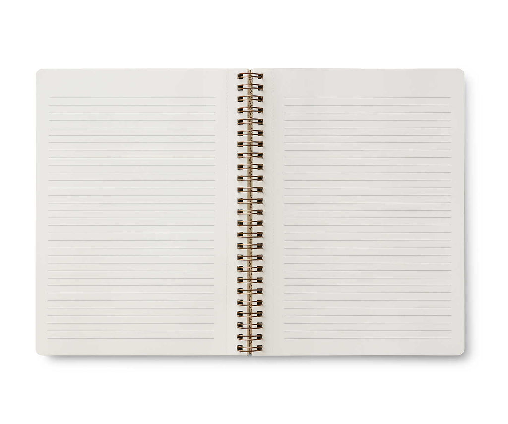 Spiralbunden soft anteckningsbok med linjerade och perforerade blad. Praktisk ficka på pärmens insida. Vackert illustrerat omslag med detaljer i guldfoliering.