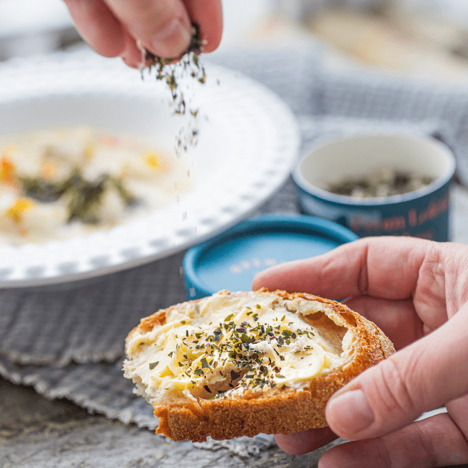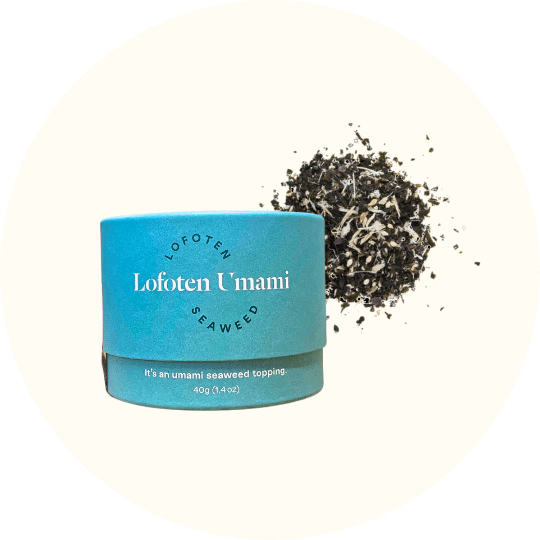 Det er furikake, med en nordlig vri! Lofoten Umami er en blanding av butare, søl, sesamfrø og autentisk Lofoten tørrfisk – arktisk torsk tørket naturlig i havbrisen etter tradisjonelle metoder. Lofoten tørrfisk har status som beskyttet geografisk betegnelse, noe som setter den i samme klasse som champagne. Dette er et unikt deilig krydder som innkapsler historien og fremtiden til Lofotens mattradisjoner.