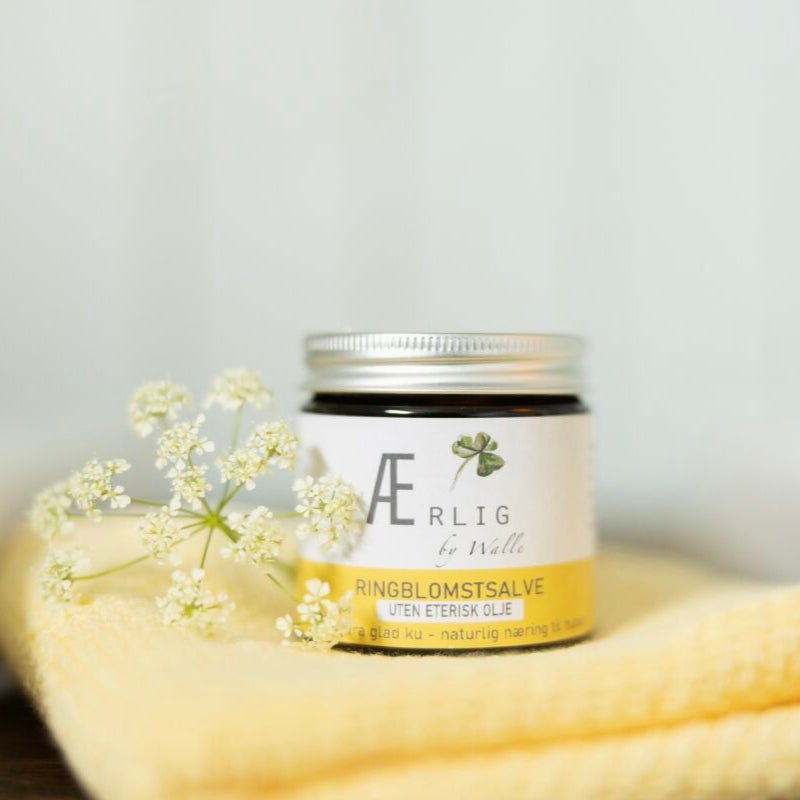 Ringblomst er kjent for sine helende egenskaper på sår og skader i huden. Anbefales derfor særlig til tørr/sår hud, eksem og sensitiv hud. Perfekt som barnesalve. Kan også brukes som vanlig dag-og nattkrem.