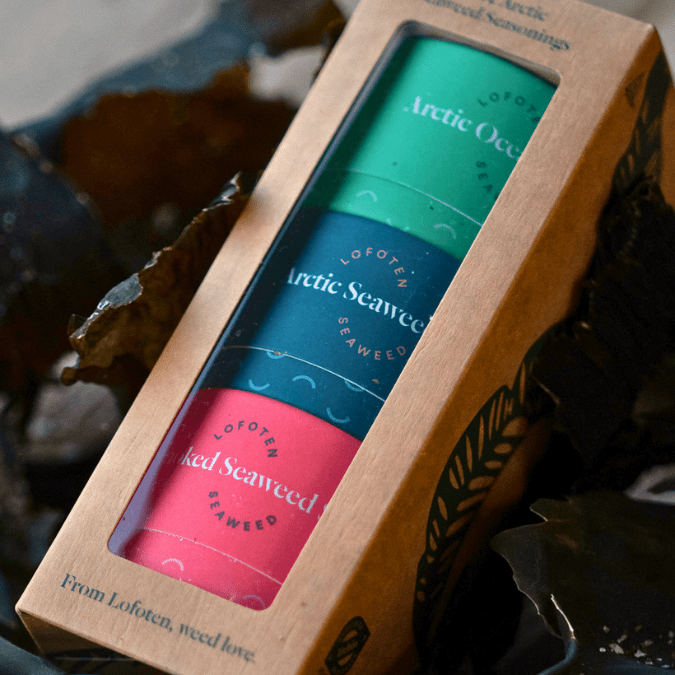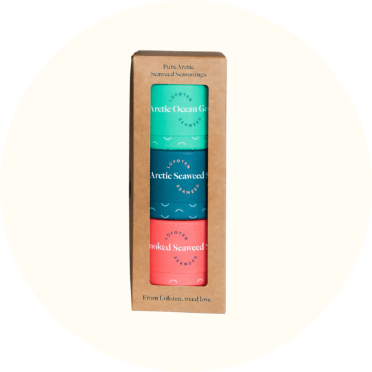 Lofoten Seaweeds tre bestselgende produkter i miniutgaver i en miljøvennlig gaveeske: Simply Seaweed, Arctic Seaweed Salt og Smokey Seaweed Salt. En praktisk måte å prøve flere varianter, eller gi som gave til matinteresserte – fra hobbykokker til profesjonelle. Næringsrikt og full av umami er dette en perfekt salterstatter som hever smaken på ethvert måltid. Passer godt til sjømat, supper og gryter, og i brød og bakst. Bruk den helt enkelt i smoothie, grøt og dressinger. Dette produktet er perfekt for veganere og vegetarianere som ønsker gode smaker og næringskrik mat.