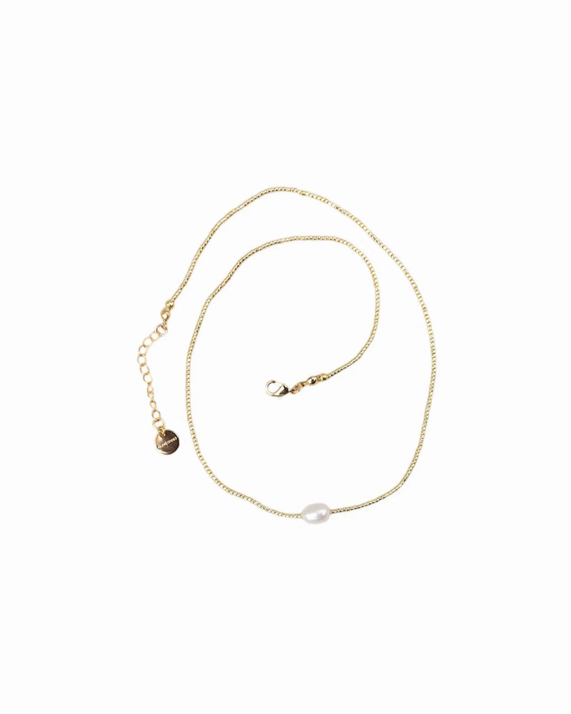 Dette nydelige smykket er laget med ferskvannsperle, glassperler og 18k gullbelagt messing med e-coating. Den justerbare størrelsen gjør at det passer komfortabelt rundt halsen fra 40-43 cm. Det er virkelig det perfekte tilbehøret for å løfte ethvert antrekk. Hvert smykke kommer i en smykkepose sammen med et feel good-kort, og er klar til å bli gitt bort.
