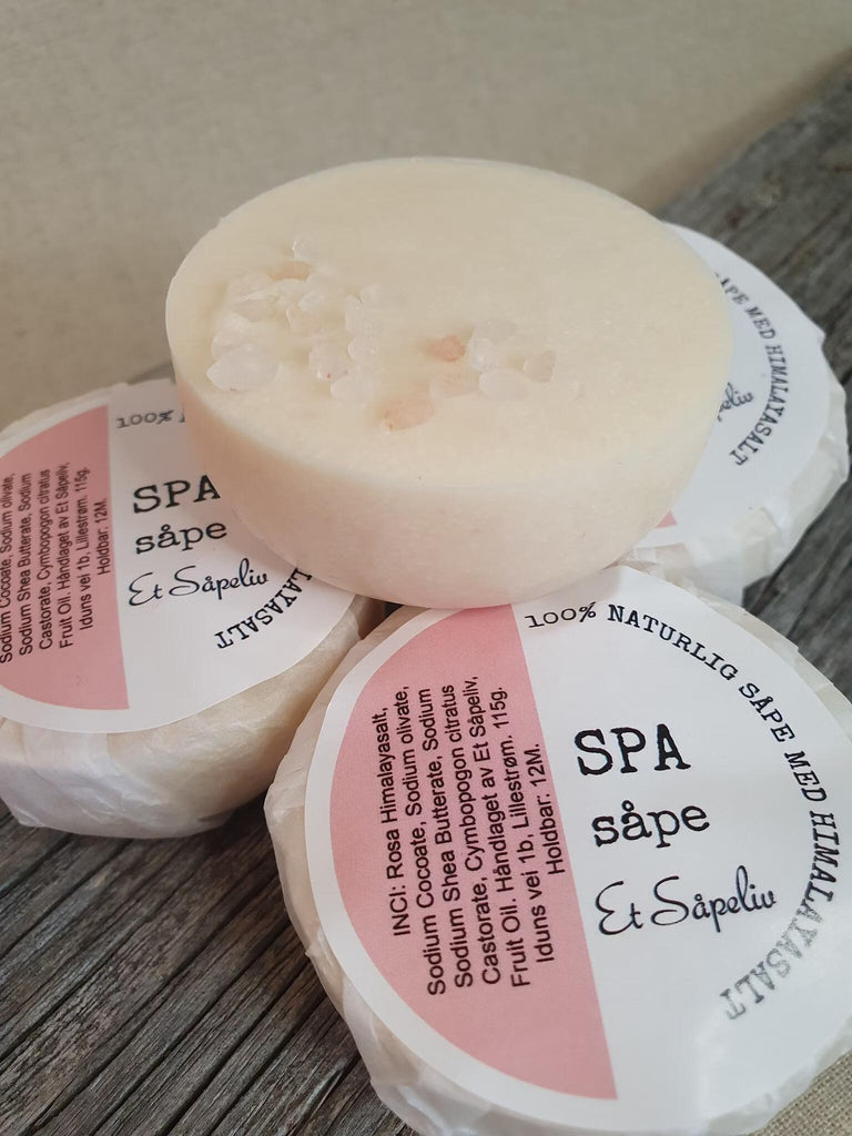 SPA er en herlig skrubbsåpe som gir deg følelsen å være på spa i din egen dusj. Med over 30% rosa himalayasalt vil den fjerne døde hudceller og tilføre huden masse næring. Havsalt er en av de beste naturlige eksfoliantene og inneholder mange av mineralene huden vår trenger for å forbli ung og sunn. Når det gjelder de BESTE ingrediensene for å vaske og eksfoliere huden, er Himalayasalt på toppen listen. Kombinert med de fuktighetsgivende fordelene fra sheasmør, olivenolje, kokosolje og kastorolje, gir denne eksfolierende såpen en luksuriøs og nærende opplevelse for huden din. Eterisk olje av sitrongress gir flere fordeler, inkludert å stimulere blodsirkulasjonen, lindre muskel- og leddsmerter og heve humøret. Det er et populært valg for både hudpleie og generell velvære.