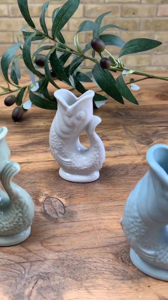 Disse muggene er formet i en tradisjonell koi-fiskestil og har en munnformet skjenker som lager en "glugg glugg"-lyd når væske helles ut, og gir dem navnet sitt. Gravert med finne og ansiktsdetaljer, er håndtaket formet av den buede halen, og er laget med en base som den står på.