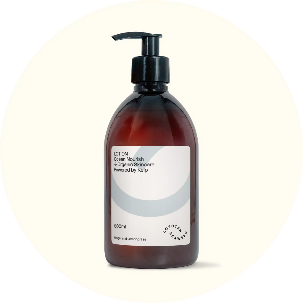 Opplev luksus med hånd- og bodylotion laget med økologisk tang fra Lofoten. Beriket med naturlige ingredienser som vitamin C, antioksidanter og aminosyrer, gir denne lotionen huden næring og revitalisering, og fremmer et sunt, strålende utseende. Den utnytter tangens fuktighetsgivende egenskaper, og etterlater huden glatt, smidig og velduftende med en mild duft av ingefær og sitrongress. En enkel luksus for huden din, inspirert av naturens beste ingredienser.
