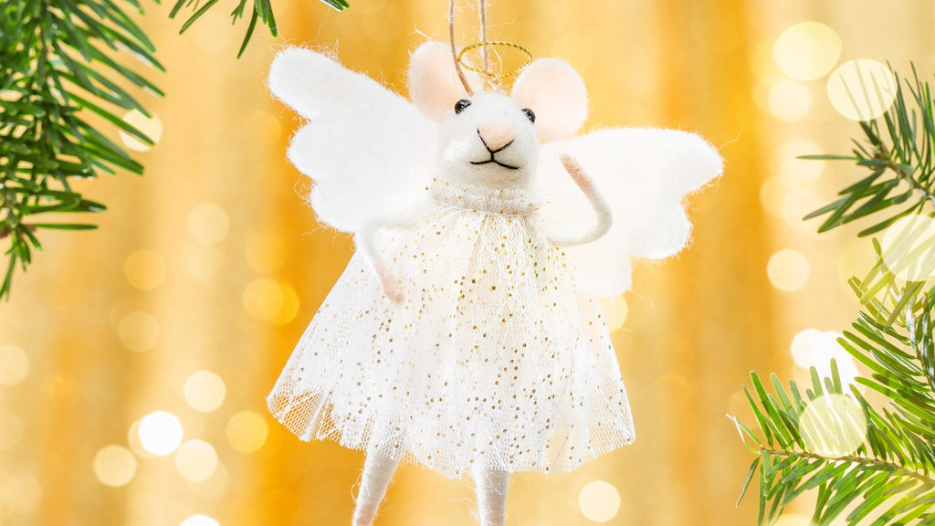 Denne søte musen i englekostyme er perfekt til å henge på juletreet eller på annet oppheng.