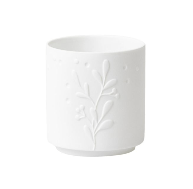 Telysestake laget av det vakreste og tynneste hvite porselenet. Lysestaken har en vakker hagescene, og når du plasserer et telys i den, kommer denne vakre dekoren enda bedre frem.