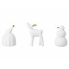 Sett med tre søte figurer i porselen: 1 nisse, 1 reinsdyr, og 1 snømann.
