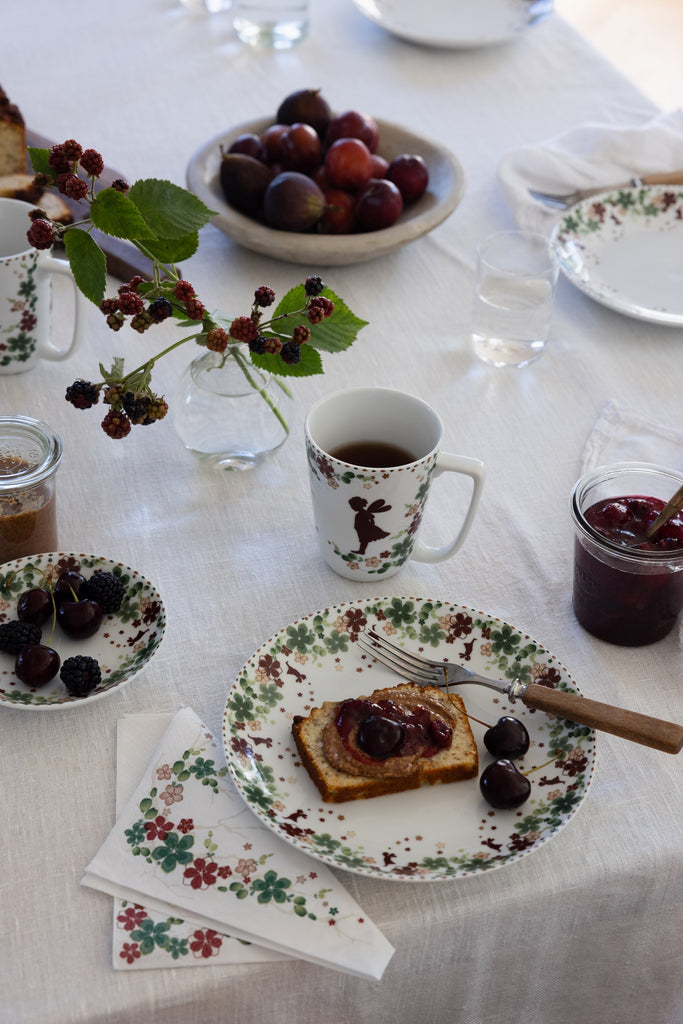 Alveblomst asjett har et vakkert blomsterdesign og en naturlig fargepalett, som passer godt til hverdagens små og store øyeblikk. Porselenet er laget av rene naturmaterialer, som tåler oppvaskemaskin og stekeovn, og gjør at Alveblomst er velegnet til hverdagsbruk.