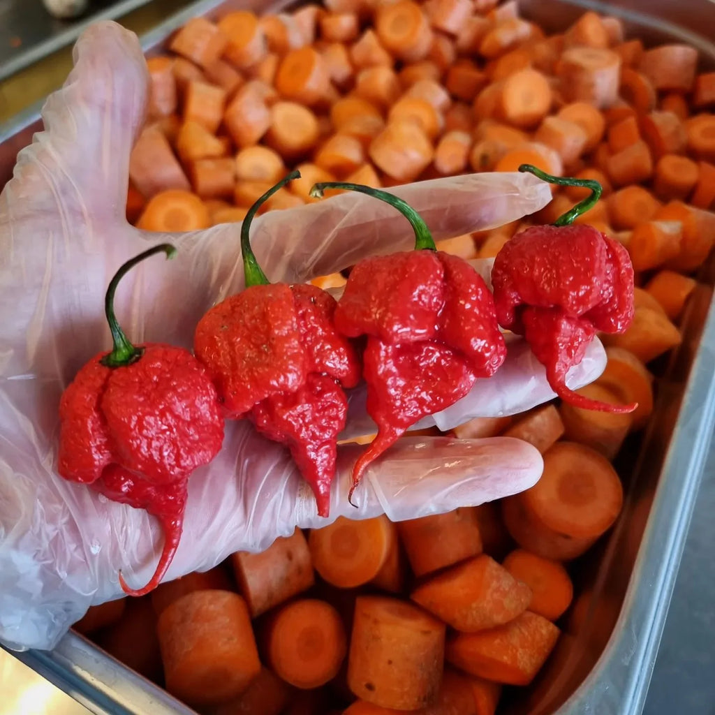 Sausen er laget av 4 chilityper - Scotch Bonnet, Bhut Jolokia, Habanero, og Carolina reaper. Den er også fermentert med gulrot, søt paprika, hvitløk, rødløk og krydder.