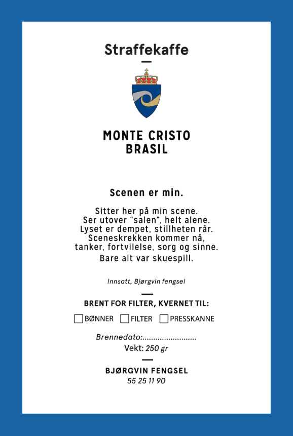 Straffekaffe er Kriminalomsorgens egen kaffemerkevare. Kaffen du kjøper er brent, kvernet og pakket av innsatte i samarbeid med ansatte i Bjørgvin fengsel rett utenfor Bergen. Vi vet at straffekaffeprosjektet kan forebygge ny kriminalitet fordi det aktivt trener ferdigheter som reduserer sannsynligheten for tilbakefall. Det gir den domfelte ferdigheter som gir mulighet til jobb.