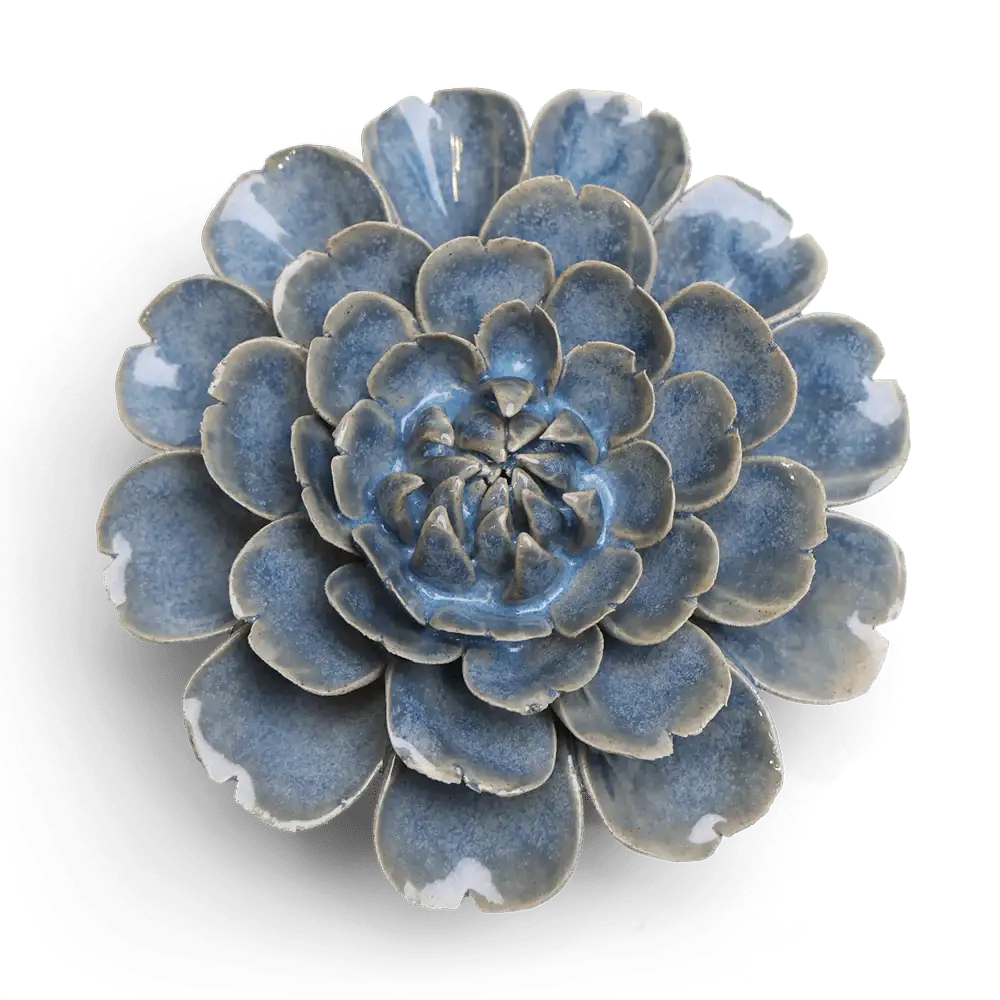Den delikate keramiske blomsten folder seg ut i et fengslende uttrykk, med blåfargede kronblader glasert til perfeksjon. Dette unike veggopphenget forvandler ethvert rom til en grønn oase og kombinerer kunstige blomster med rustikk boho-sjarm for et kunstnerisk og stemningsfullt blikkfang.