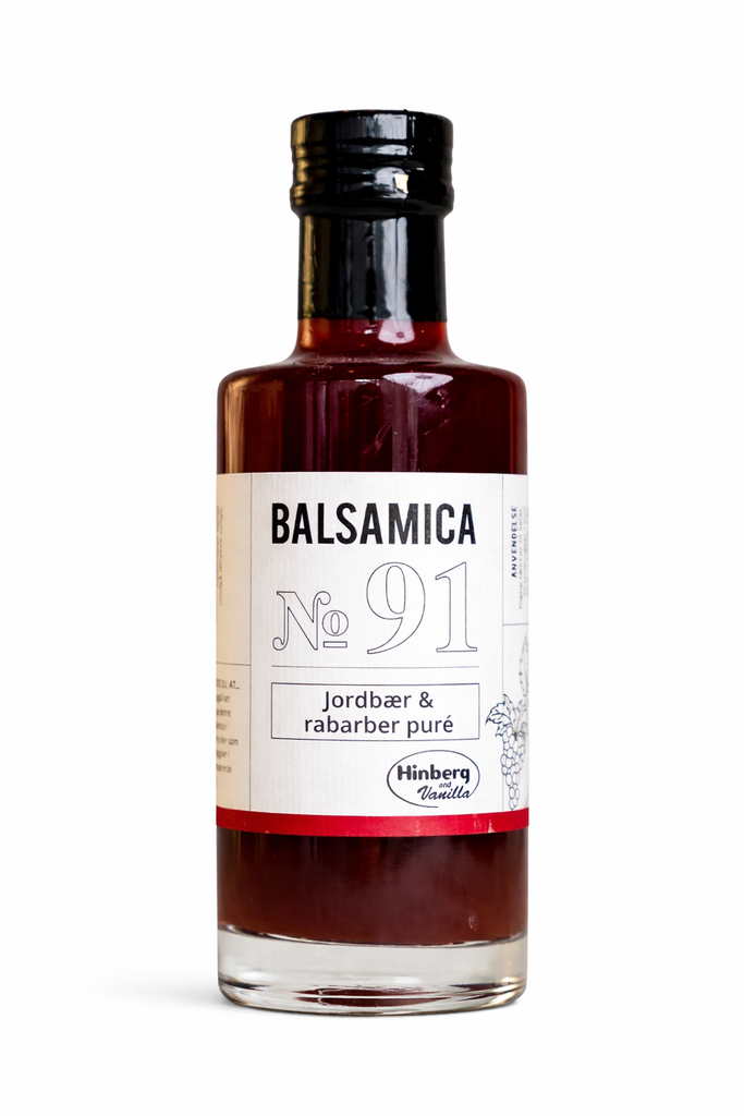 Søt kremet eddik med smak av jordbær og rabarbra.