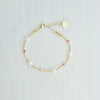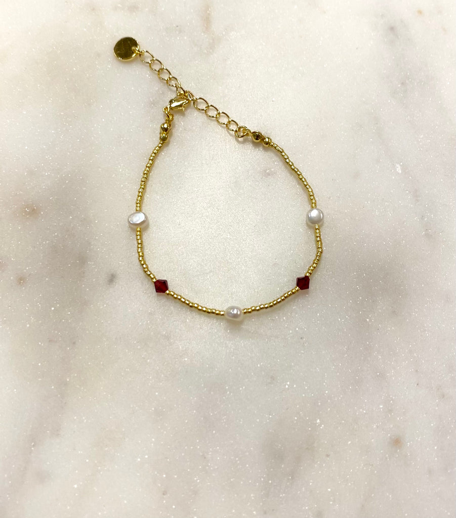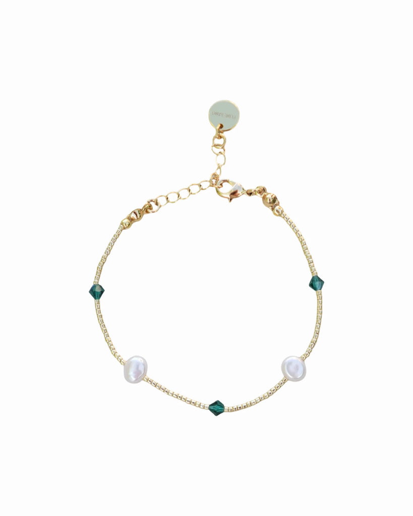 Liz armbåndet er laget med glassperler, ferskvannsperler og 18k gullbelagt messing med e-coating. Med sin justerbare størrelse kan det komfortabelt passe håndledd fra 15,5 til 18,5 cm. Det er det perfekte tilbehøret for å heve ethvert antrekk. Hvert smykke kommer i en fin smykkepose sammen med et feel good-kort, og er klar til å bli foræret.
