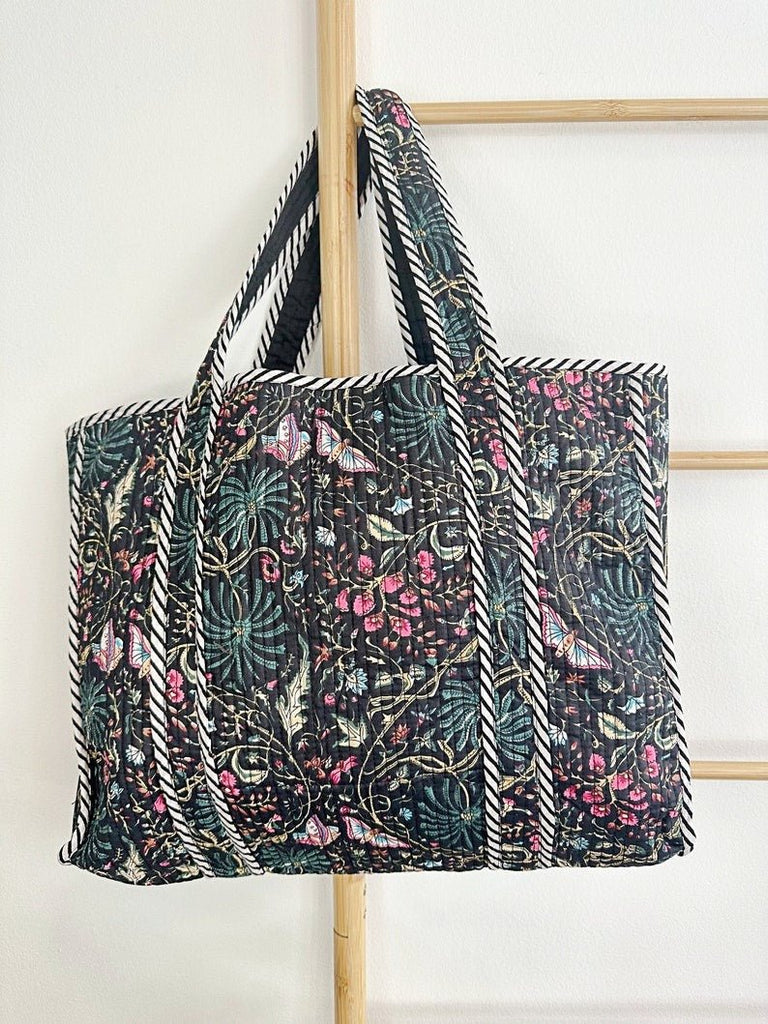 Hver veske er laget av 100 % håndtrykt bomull med nydelige mønstre – et fresht og miljøvennlig alternativ til plastposer. Lett, romslig og klar for alle små og store eventyr.