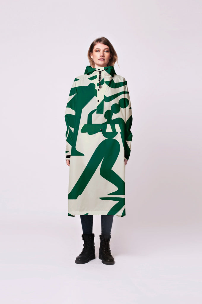 Denne ponchoen er full av glede, med et repeterende mønster av karakterer i illustratøren Timo Kuilders signaturstil.
